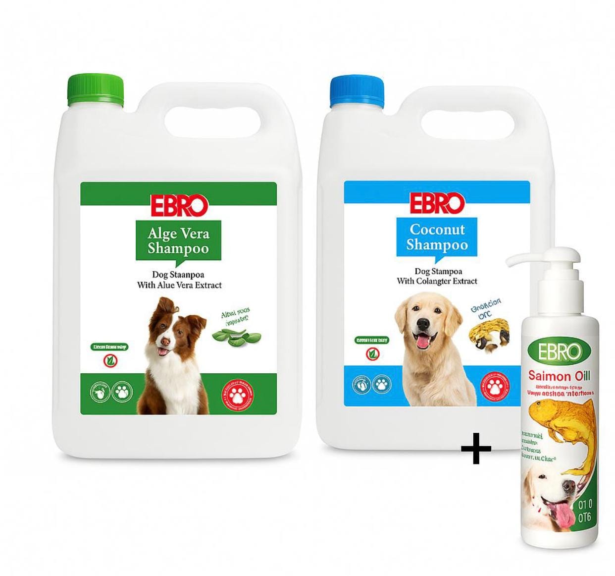 2 Shampoings EBRO 5 L pour chiens + huile offerte : grand format pour un pelage propre, doux et brillant, idéal pour un soin complet
