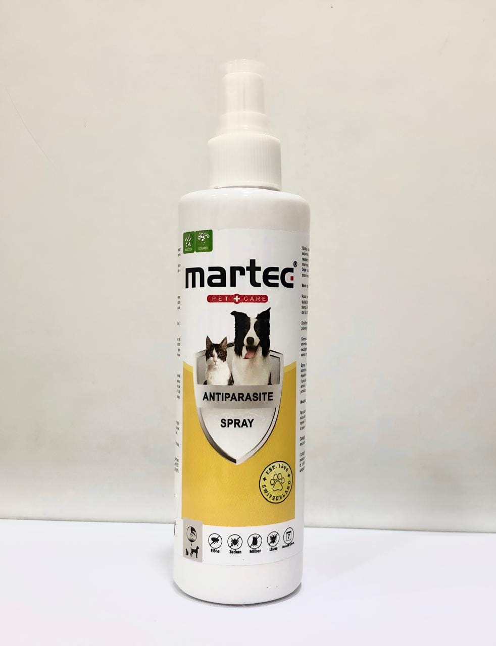 Les parasites restent souvent à proximité des animaux et peuvent également infester leur environnement. Il est donc recommandé d’utiliser le spray antiparasitaire Martec PET CARE pour traiter également l’environnement de l’animal, pour une protection complète.